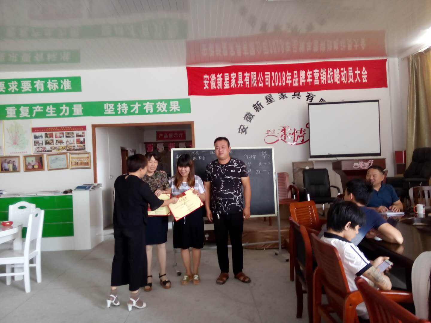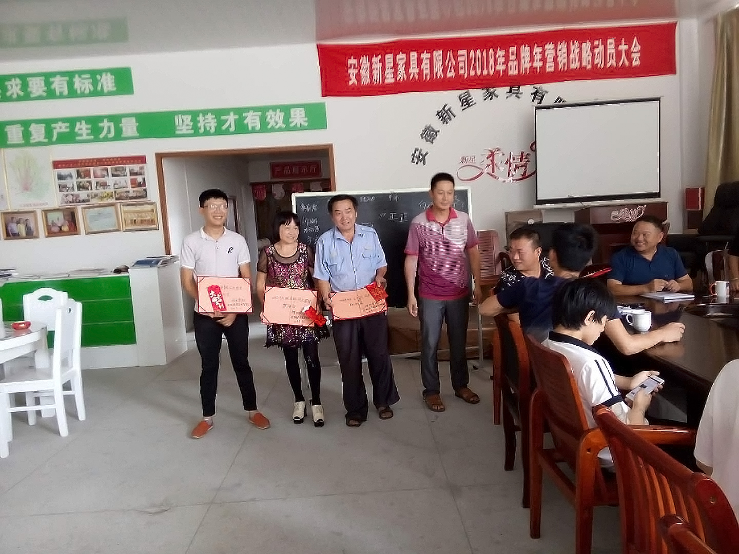 2018年9月13日上午,安徽新星家具有限公司全體職工8點準時到達會議大廳,總經(jīng)理王得義召開第二季度職工大會,由于上幾個月銷售業(yè)務繁忙所以一直到9月13日才舉行。會上王得義總經(jīng)理發(fā)表了精彩演講。主要針對職工的安全生產(chǎn),職工的生產(chǎn)業(yè)績,銷售業(yè)績等作了匯報。并表揚了******干部,******員工,并設置******干部獎,******員工獎,鼓勵獎。總經(jīng)理總結(jié)工作會議,希望員工們,一如既往保持工作干勁,使公司業(yè)績保持良好,公司決定組織員工于10月份黃山旅游。