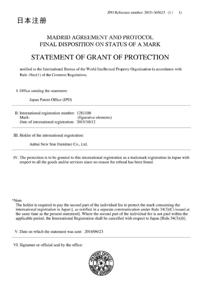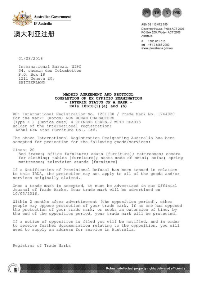安徽名牌產(chǎn)品-柔情床墊申請(qǐng)的國(guó)外商標(biāo)開(kāi)始陸續(xù)到達(dá)店面。